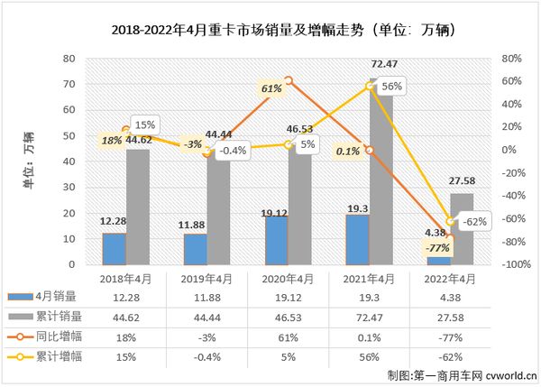 疫情多地爆发、企业停工停产、物流业受阻严重、上年基数过高……4月份的重卡市场继续下滑早已是业内共识,但没想到会“跌”得如此惊人。
